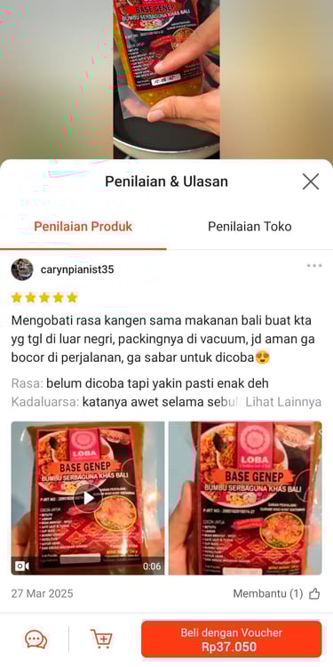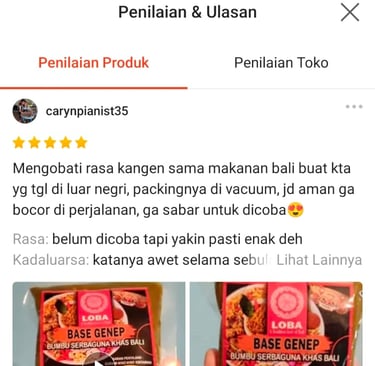 Saya suka kemasan mewah dan rasa yang kaya dari loba. Bumbu ini membuat setiap hidangan Bali terasa seperti di restoran bintang lima.